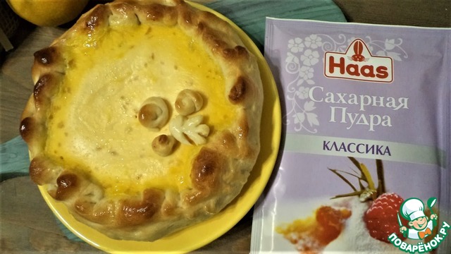 Печем в разогретой до 200 гр духовке до подрумянивания теста около 15 мин. Снижаем температуру до 170 гр и доводим до готовности начинки, еще около 10 мин. Проверяем готовность сухой лучинкой.
