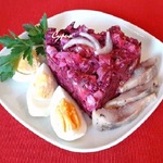 Иногда готовлю с икрой, в вот со сливочным маслом и икрой, чЕ то не зашло. Свеклу запекаю, а картофель давненько убрала из салата, остальное без изменений.