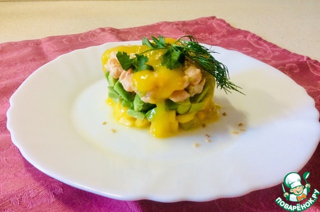 Вариант закуски из лосося, который не стыдно подать на праздничный стол. Яркие цвета и тропические нотки манго и авокадо гарантируют радужное настроение гостям и близким.