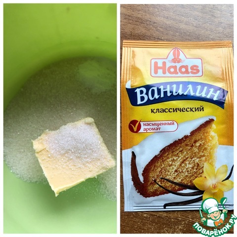 Мягкое масло, сахар и ванилин взбить до однородной массы.