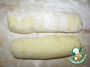 Скатать тесто в колбаски. Я делаю две, так удобнее.