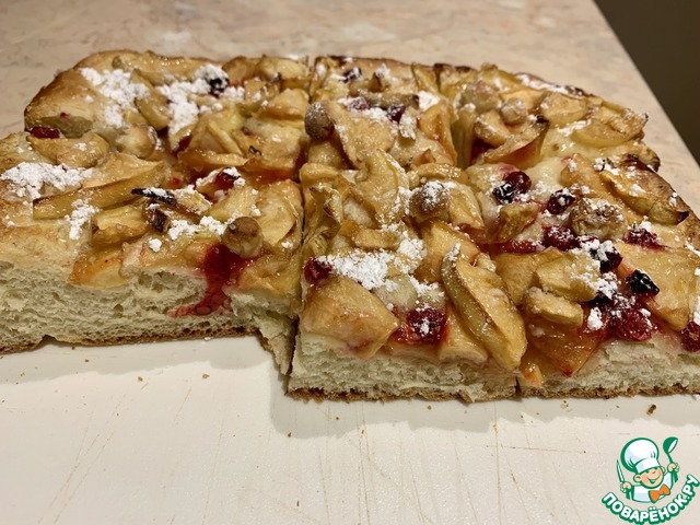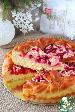 Рецепт «Сдобный пирог с яблоками и брусникой»: