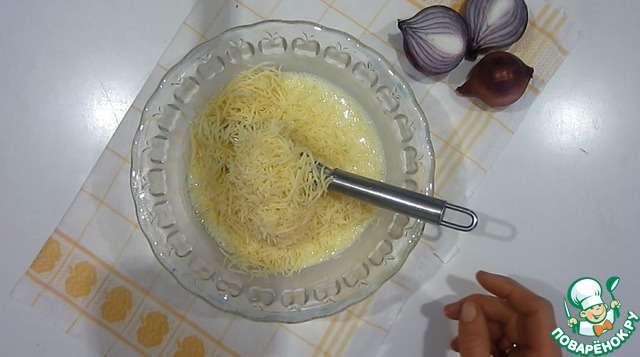 Мелко нарезаем лук и обжариваем на масле. Даем остыть.