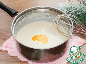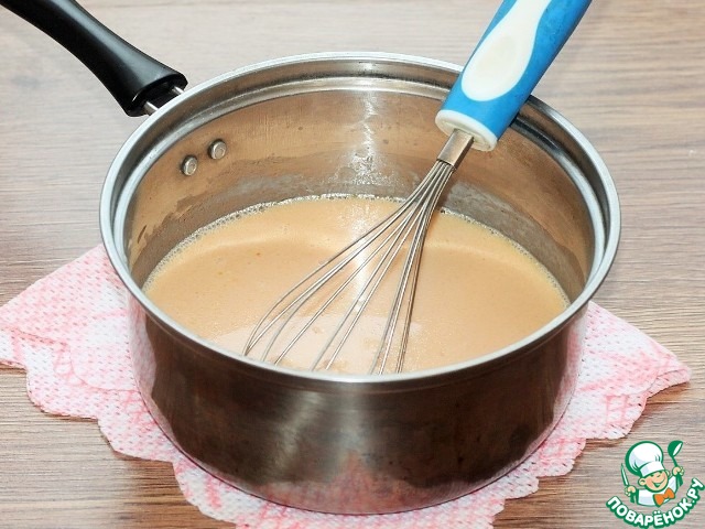 6. Добавить яичные желтки и тщательно взбить. Снять миску с огня и хорошо остудить.
