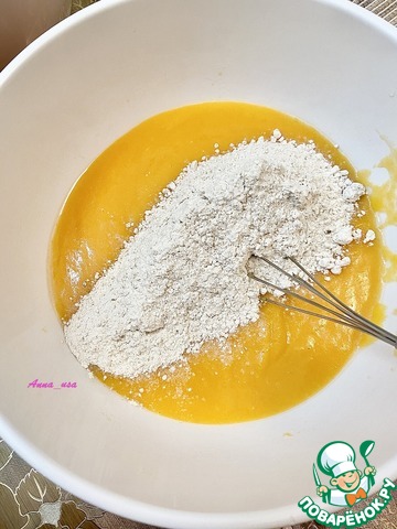Мучную смесь добавить в тыквенную и хорошо размешать.