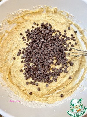 Добавить шоколадные капли или маленькие кусочки шоколада и перемешать.