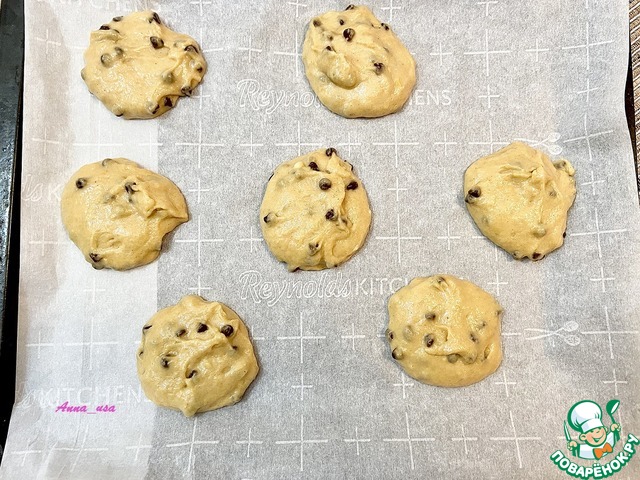 Противень застелить пергаментом, духовку разогреть до 180*C (350*F). Выложить тесто столовой ложкой на небольшом расстоянии друг от друга.