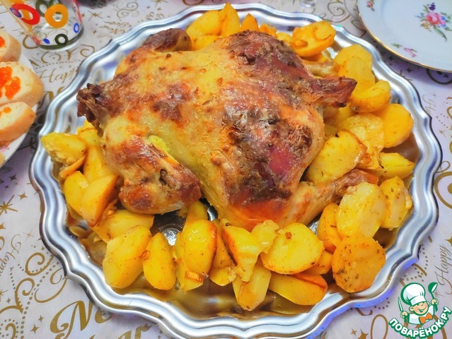 Курочка запеченная получается сочной, нежной и просто тает во рту. Картофель во время приготовления пропитывается соком курочки. Такое блюдо подойдет как на семейный ужин так и на праздничный стол.