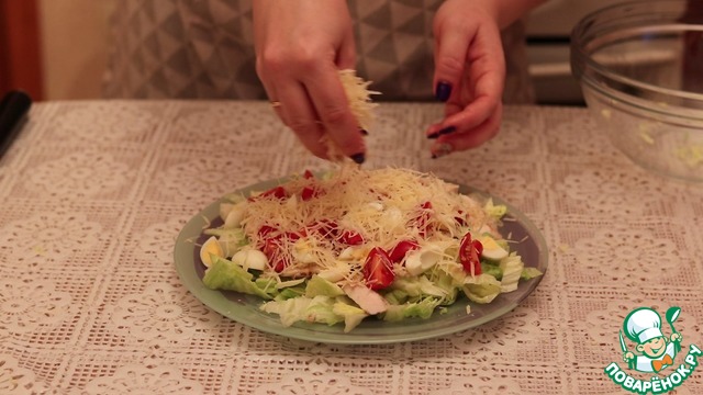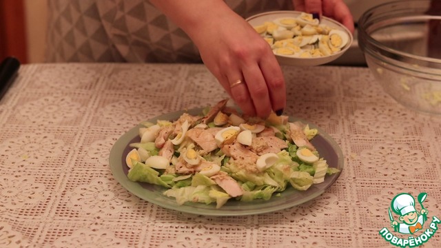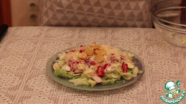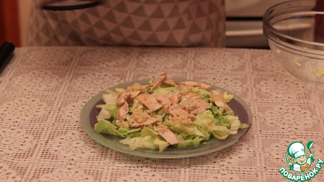 Очень популярный салат Цезарь с курицей. Его можно заказать в любом кафе и ресторане. Изюминкой этого салата является соус. Благодаря ему сочная курочка, хрустящий салат и нежные помидорки черри превращаются в легендарный салат Цезарь.