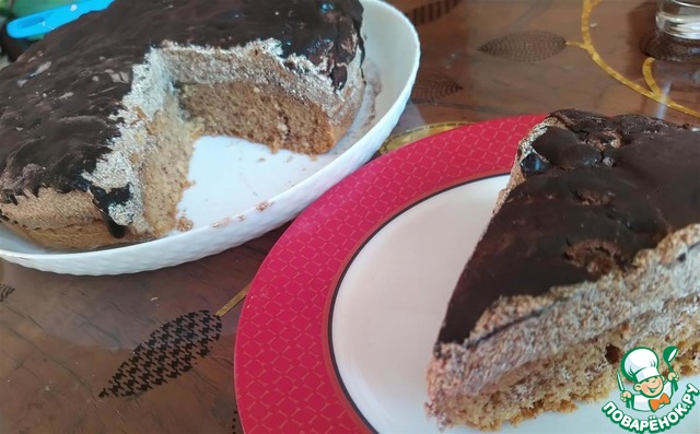 Корж (можно пропитать) смазать кремом и отправить в холодильник. После залить растопленным шоколадом и убрать в холодильник на 5 часов.