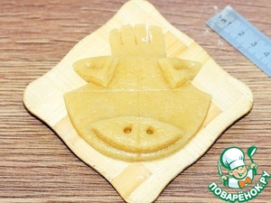 14. Приклеиваем "чуб" при помощи взбитого яйца.