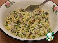 Хорошо перемешаем, масса должна быть пригодной для лепки из нее шариков. Она не должна быть жидкой, а такой, чтобы при сжатии в шарик, она всего навсего не рассыпалась. Жидкая масса не будет держать форму, поплывет. Посолим, поперчим по вкусу.