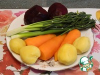 Приготовим необходимые продукты. Картофель и свеклу запечем в духовке. Морковь отварим. Зелень промоем.