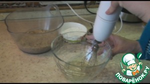 Берем один яичный белок, добавляем щепотку соли и взбиваем в пышную пену.