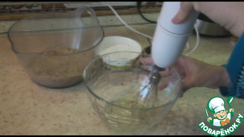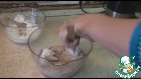 Потом добавляем понемногу взбитый белок и замешиваем тесто.