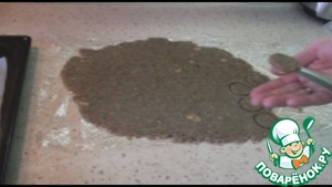Выкладываем тесто на пергамент или пищевую пленку, накрываем вторым куском и раскатываем толщиной 3-4 мм.