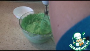 Потом выдавим лимонный сок и добавим зеленый краситель, хорошо размешаем.