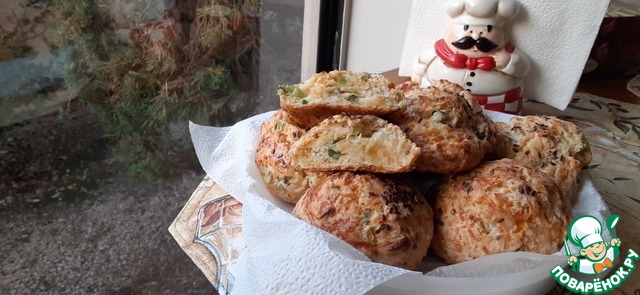 Сырные булочки получаются вкусные, мягкие и очень душистые. В их составе есть зеленый лук и чеснок, поэтому смело подавайте их к супам или бульону, к отварному картофелю или рису. Они идеальны для бутербродов или канапе. Хороши и в теплом и холодном виде для перекусов и ссобоек.
