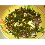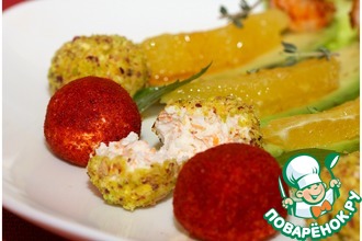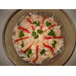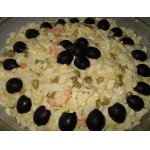 Морепродукты не плохо сочетаются с ананасами, а горчичный соус придает салату пикантность и яркость вкуса.