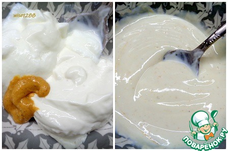 Для соуса: сметану, майонез, горчицу, соль соединить, перемешать.
