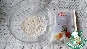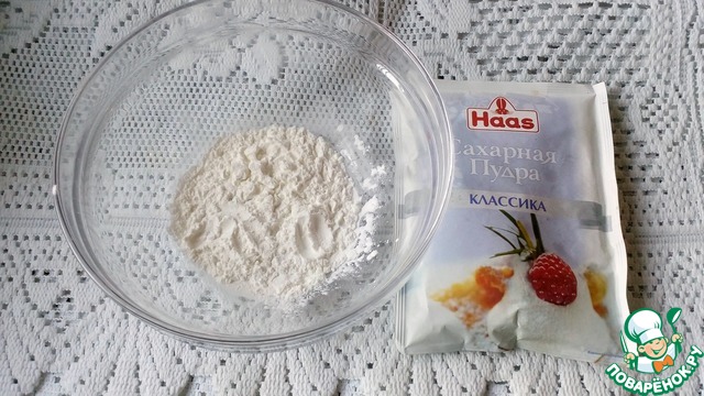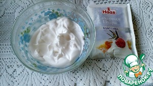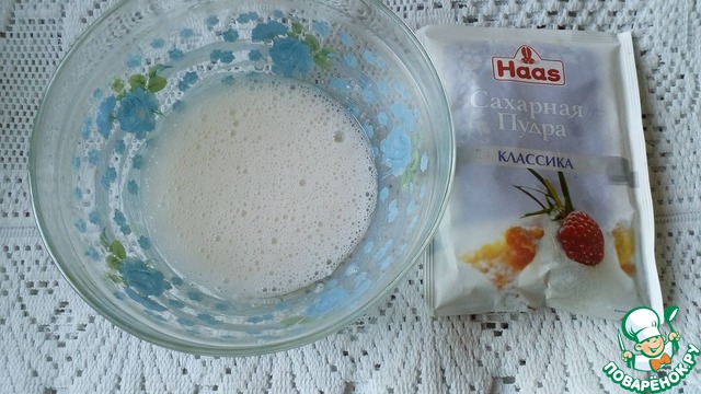 Взбейте оставшиеся белки до устойчивой пены. Добавьте сахарную пудру (20г)