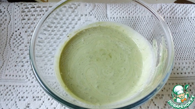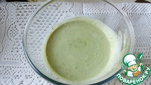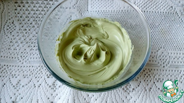Нагрейте сливки (50 г) почти до кипения. Вылейте на белый шоколад. Через минуту перемешайте силиконовой лопаткой. Добавьте желатиновую массу и чай матча. Пробейте блендером.