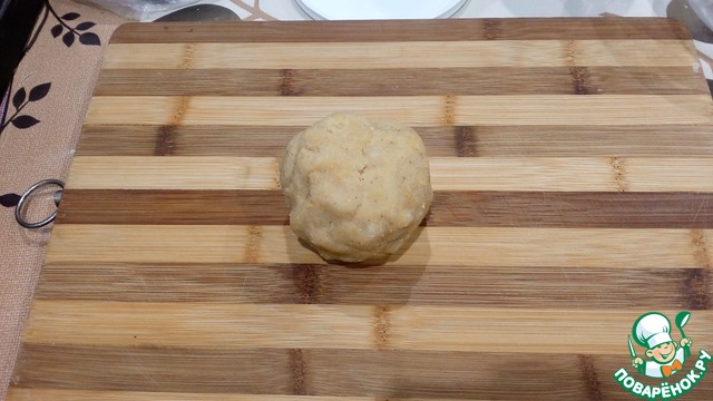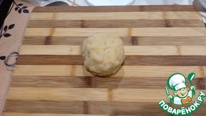 Приготовим песочное тесто. Смешайте муку с миндальной мукой, солью, сахарной пудрой и мелко нарезанным холодным маслом до состояния крошки. Добавьте желток и вымесите тесто.