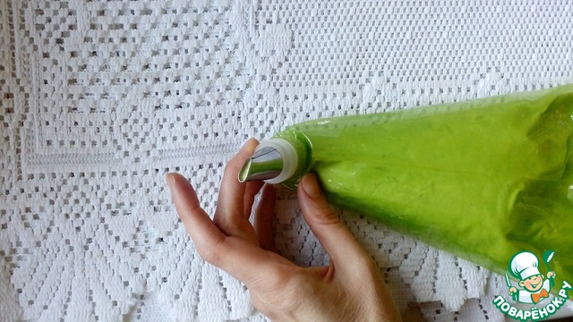 Составные пирожного можно приготовить заранее. Можно даже отсадить крем на полусферу и заморозить.
