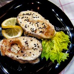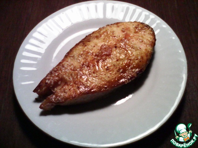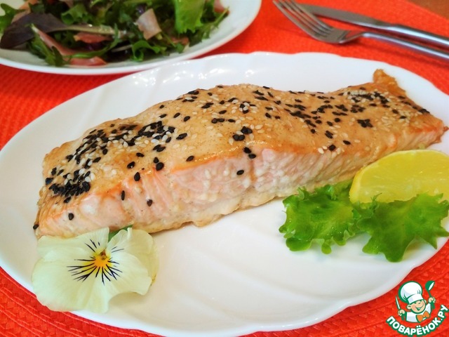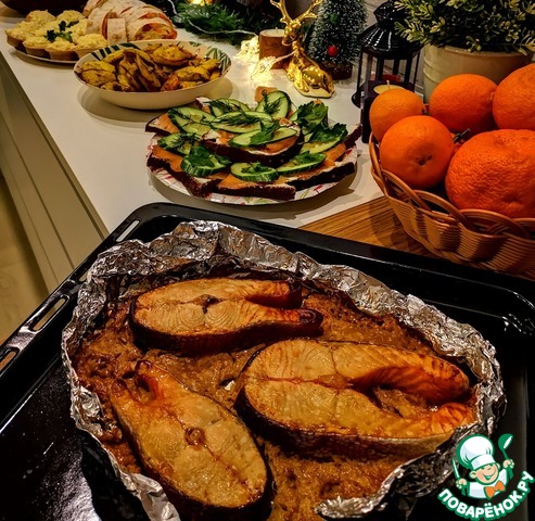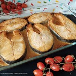 Рецепт «Стейки лосося, запеченные в сливочном соусе»: