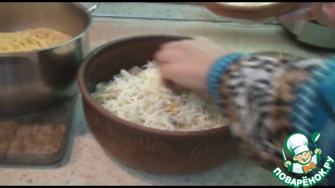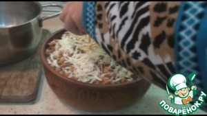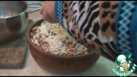 Посыпаем оставшейся моцареллой и твердым сыром. Запекаем при 180 градусах 30 минут.