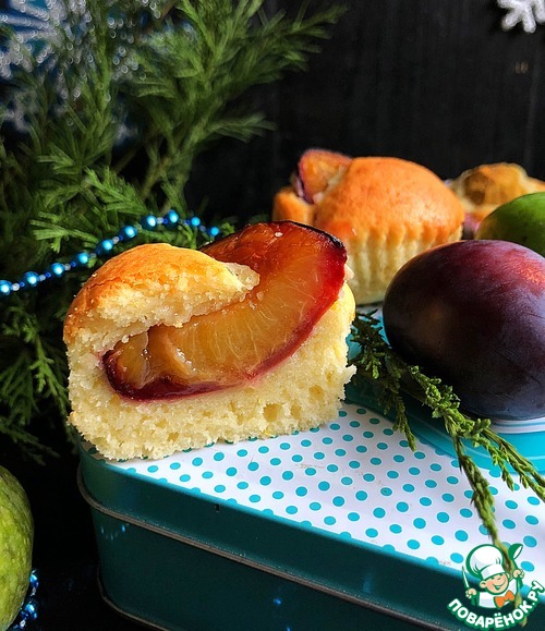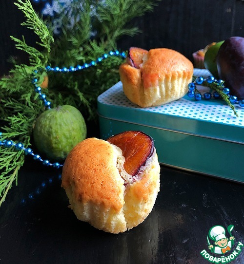 Рецепт «Сметанные кексы с фейхоа и сливой»: