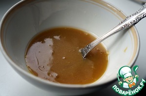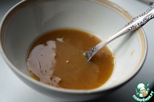 Для глазури смешать мед, масло и горчицу, хорошенько перемешать.