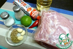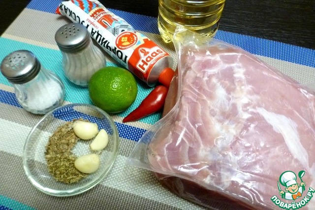 Подготовить все ингредиенты для поркетты. Мясо желательно взять ровный кусочек, чтобы форма была красивой. У меня килограммовый кусок карбонада.