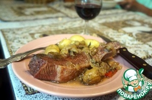 В этом варианте приготовления говядины баклажаны в процессе тушения превращаются в соус. Блюдо получается насыщенного вкуса, ароматное и сытное. Можно подавать его без всякого гарнира, просто под тем соусом, в котором мясо готовилось. Но и гарнир не будет лишним. Для тушения я выбрал говяжью грудинку, каждая примерно по 500-600 граммов. Кости, жилки и жирные сегменты пустил на бульон для супа, для тушения оставил только мякоть. Предварительно промаринованное в вине, мясо получило дополнительный вкус и стало мягче.