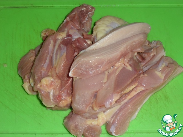 Куриное мясо нарезаем.