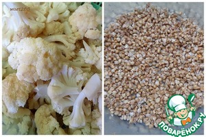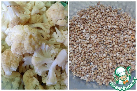 Гречневую кашу и кочанчики цветной капусты отварить в подсоленной воде до готовности.