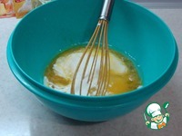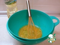 Растительное масло, сахар и яйца размешать в чашке венчиком. |