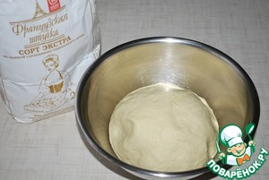 Смешайте теплую воду, свежие дрожжи и мед. Дайте немного постоять. Добавьте в смесь соль, растопленное сливочное масло и муку ТМ "Французская штучка". Перемешайте до полного смешивания примерно 2–3 минуты (я это сделала в миксере на низкой скорости насадкой крюк). Потом прибавьте скорости в миксере и продолжите замес. Тесто должно стать эластичным и гладким, должно хорошо отставать от стенок чаши. Если тесто слишком влажное, добавляйте по столовой ложке муки. У меня на это количество жидкости ушло 450 г муки.