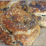 Выложите бублики на противень с пекарской бумагой. Смажьте сверху взбитым яйцом. Получается 4 больших бублика. Сверху бублики посыпьте обильно маком и крупной солью (по вкусу). Поставьте в разогретую духовку выпекаться. Я выпекала 15 минут при температуре 180°C, потом температуру убавила до 170°C и выпекала еще 15 минут до готовности.