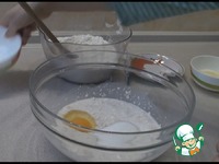 Потом добавляем яйцо, остальной сахар, ванильный сахар. Размешаем.