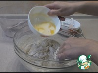 Когда уже вмешаем муку добавим растопленное сливочное масло и вмесим его в тесто.