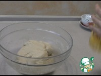 Тесто получается мягкое, немного липнущее к рукам, но муки больше добавлять не стоит. Смажем миску подсолнечным маслом, выкладываем тесто, накроем полотенцем и оставляем в теплом месте без сквозняков для подъёма. У меня прошло 40 минут, время зависит от температуры в доме.