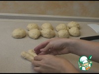 Разрежем на равные части, у меня получилось 10 кусочков. Округлим в колобочки.