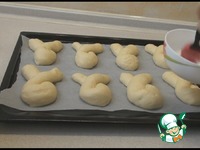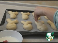 Выкладываем на противень застеленный пергаментом на небольшом расстоянии. Готовые булочки оставляем подойти на 15 минут, в это время разогреваем духовку до 180 градусов.