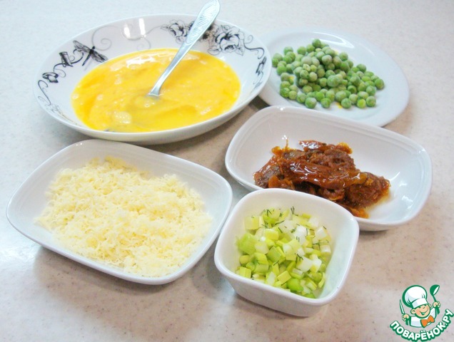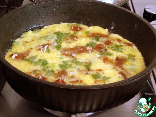 Рецепт «Омлет с вялеными помидорами и зеленым горошком»: