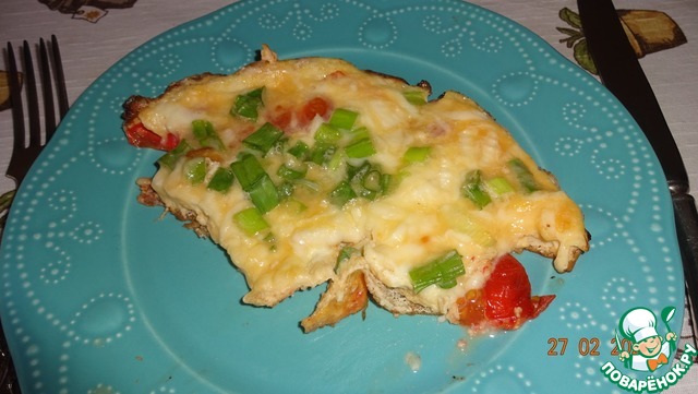 Я омлет не солила - нам хватило соли из сыра и помидоров. -