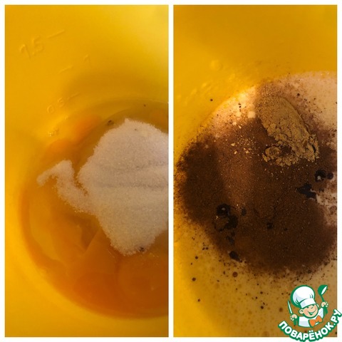 Яйца взбить с сахаром до пышной пены. Добавить имбирь, корицу и масло. Взбивать около минуты.