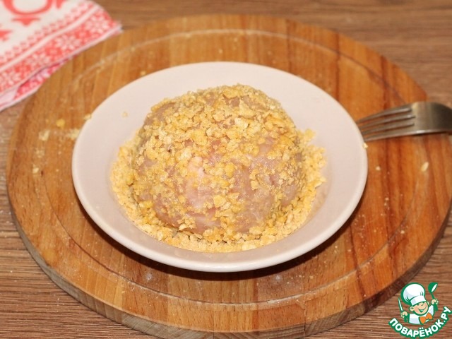 16. И обваливаем в кукурузных измельченных хлопьях.