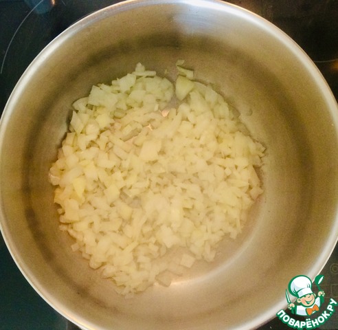 Поджарить мелко нарезанный лук на растительном масле (у меня оливковое рафинированное)