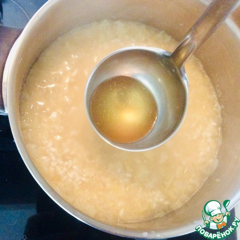 Перемешать и залить частью бульона (рис должен немного просвечивать)